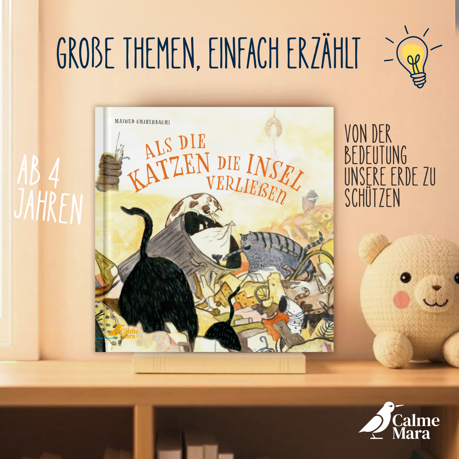 »Als die Katzen die Insel verließen« ist eine eindrückliche Geschichte darüber, was geschehen kann, wenn viele immer mehr haben wollen. Die Botschaft: Es ist sehr wichtig, dass wir Menschen uns gut um unsere eigene »Insel«, unsere Erde, kümmern!