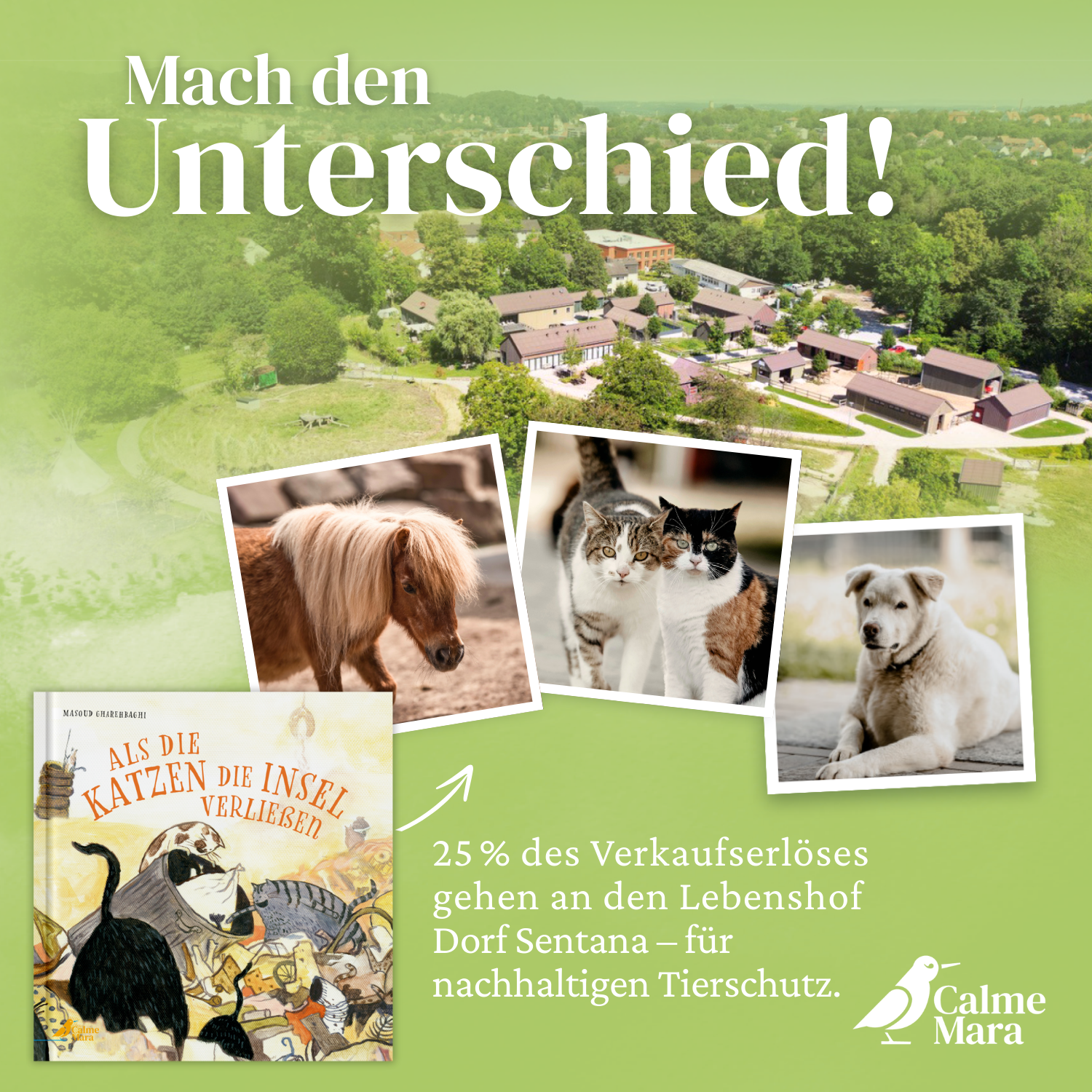 Gutes Lesen, Gutes tun: Jeder Buchkauf unterstützt die Tierschutztiere und sozialen Projekte im Begegnungs- und Lebenshof Dorf Sentana in Bielefeld.