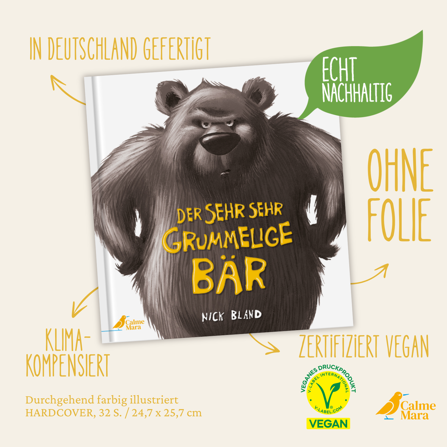 Im verregneten Dschingel-Dschangel-Dschungel suchen vier tierische Freunde einen warmen Ort zum Spielen. Aber als sie es sich gerade in einer Höhle gemütlich gemacht haben, werden sie plötzlich unter lautem Gebrüll von einem sehr, sehr grummeligen Bären wieder hinausgejagt! Zebra, Elch und Löwe schmieden einen Plan, um den Bären aufzuheitern: Kurzerhand verpassen sie ihm Streifen, Geweih und Mähne. Denn schließlich ist es unmöglich, mies gelaunt zu sein, wenn man so besonders aussieht wie sie. Mit frechen Reimen, ausdrucksstarken Illustrationen und viel Humor erzählt Nick Bland eine charmante Geschichte über Bedürfnisse, Rücksichtnahme und die Wichtigkeit des Teilens.