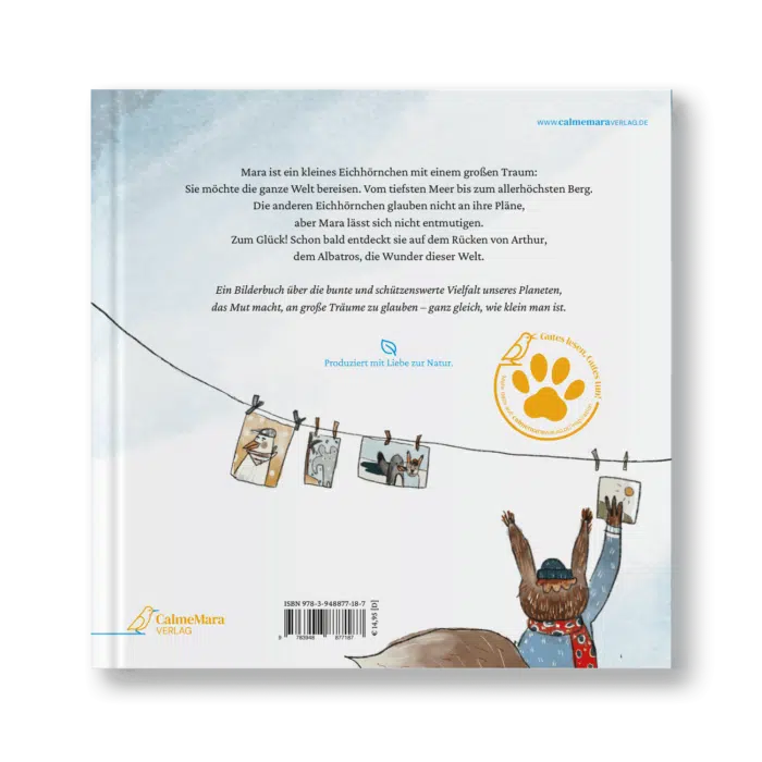 Das kleine Eichhörnchen Mara wünscht sich nichts sehnlicher, als »Eine kleine große Reise um die Welt« zu machen. Die anderen Eichhörnchen glauben nicht an ihren Traum: So ein kleines Tier wie sie ist nicht dafür gemacht, das sichere Zuhause zu verlassen. Doch Mara hält an ihren Plänen fest und findet schon bald einen passenden Reisegefährten. Auf dem Rücken von Albatros Arthur macht sie ihren großen Traum wahr und erkundet all die faszinierenden Orte unseres einzigartigen Planeten!