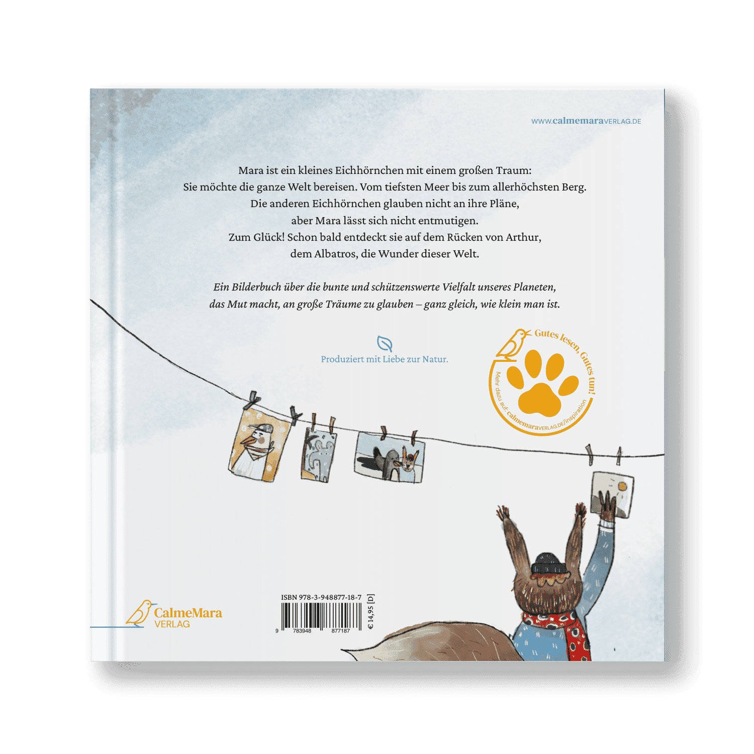 Das kleine Eichhörnchen Mara wünscht sich nichts sehnlicher, als »Eine kleine große Reise um die Welt« zu machen. Die anderen Eichhörnchen glauben nicht an ihren Traum: So ein kleines Tier wie sie ist nicht dafür gemacht, das sichere Zuhause zu verlassen. Doch Mara hält an ihren Plänen fest und findet schon bald einen passenden Reisegefährten. Auf dem Rücken von Albatros Arthur macht sie ihren großen Traum wahr und erkundet all die faszinierenden Orte unseres einzigartigen Planeten!