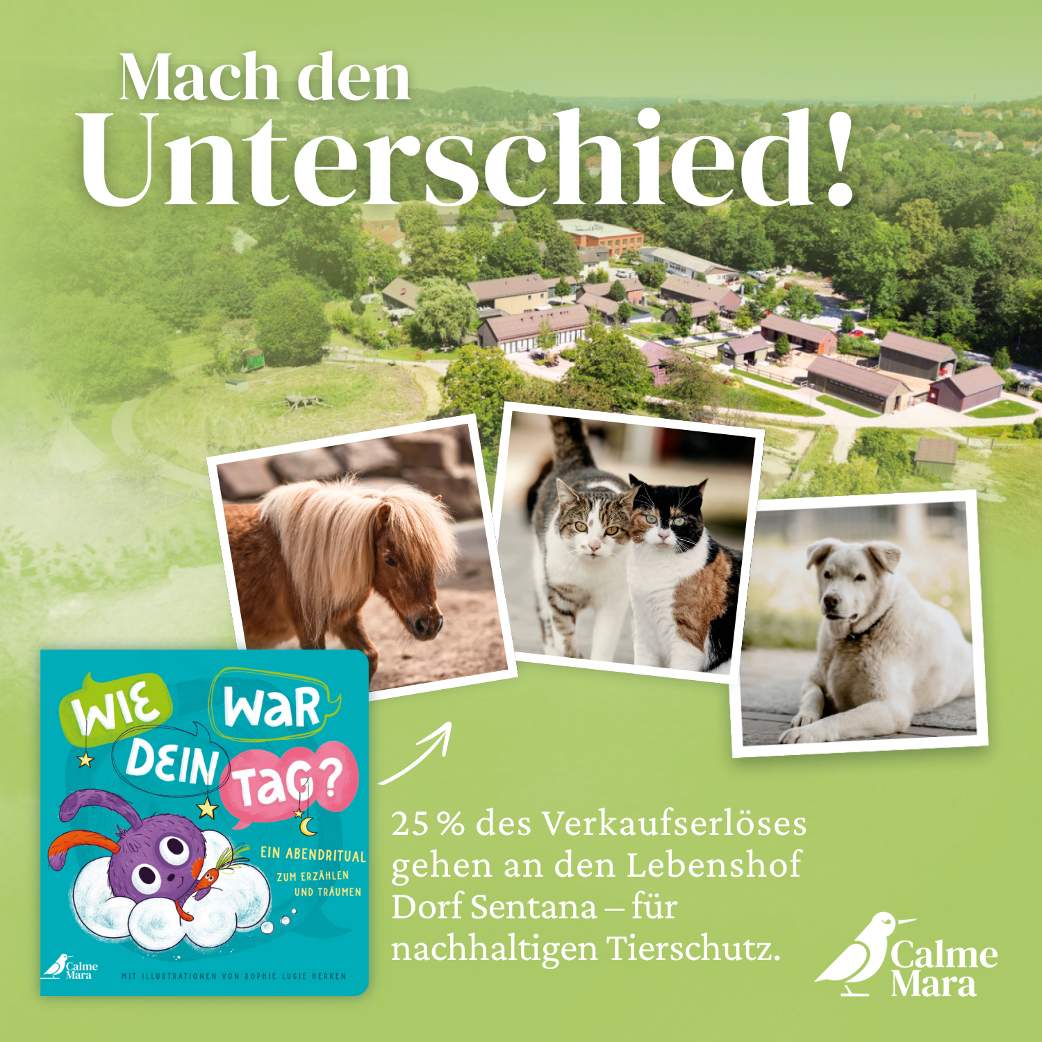 Gutes Lesen, Gutes tun: Jeder Buchkauf unterstützt die Tierschutztiere und sozialen Projekte im Begegnungs- und Lebenshof Dorf Sentana in Bielefeld.