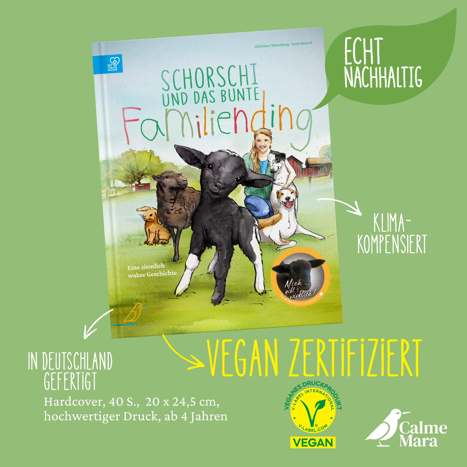 Jeder Buchkauf unterstützt den Begegnungs- und Gnadenhof Dorf Sentana in Bielefeld, wo Schorschi wirklich mit seiner kunterbunten Familie lebt und besucht werden kann. Die ziemlich wahren Geschichten der Tierschutztiere haben CalmeMara übrigens zur Gründung inspiriert.