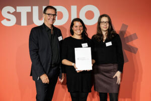Die feierliche Preisverleihung fand am 15. Oktober im Rahmen der Buchmesse in Frankfurt statt. Verleger Ralph sowie Hannah und Anne waren eingeladen, um stellvertretend für das ganze CalmeMara-Team die Auszeichnung entgegenzunehmen. Und die drei haben nicht schlecht geschaut, als der CalmeMara Verlag nicht zusammen mit den anderen Verlagen auf der Liste aufgerufen wurde… Wie sich herausstellte, wurden wir nicht vergessen, es kam noch viel viel besser als gedacht: Wir wurden mit dem Sonderpreis für Nachhaltigkeit ausgezeichnet – samt Auftritt auf der großen Bühne und wunderschöner Laudatio von der Jury. Was für eine großartige Wertschätzung unserer Arbeit der letzten Jahre und unserer nachhaltig, vegan und regional produzierten Kinderbücher!