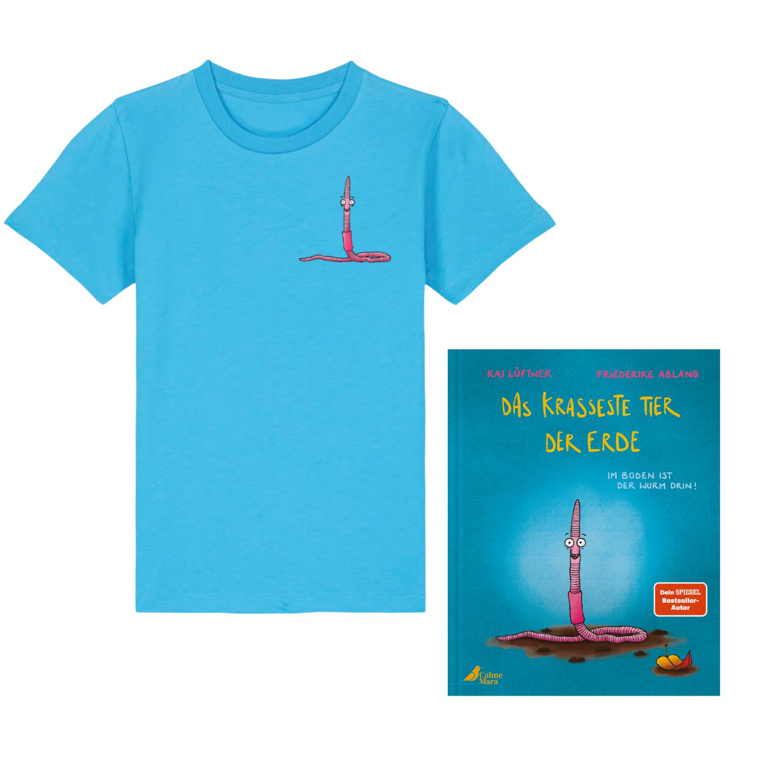 Unser beliebtes Bilderbuch »Das krasseste Tier der Erde« ist eine wimmelig-humorvolle Liebeserklärung an den Boden und seinen einzigartigen Bewohner: den Regenwurm! Für alle kleinen Fans gibt es dazu ein cooles T-Shirt in knalligem Blau mit witziger Regenwurmillustration. Damit macht das Lesen doch gleich noch viel mehr Spaß!