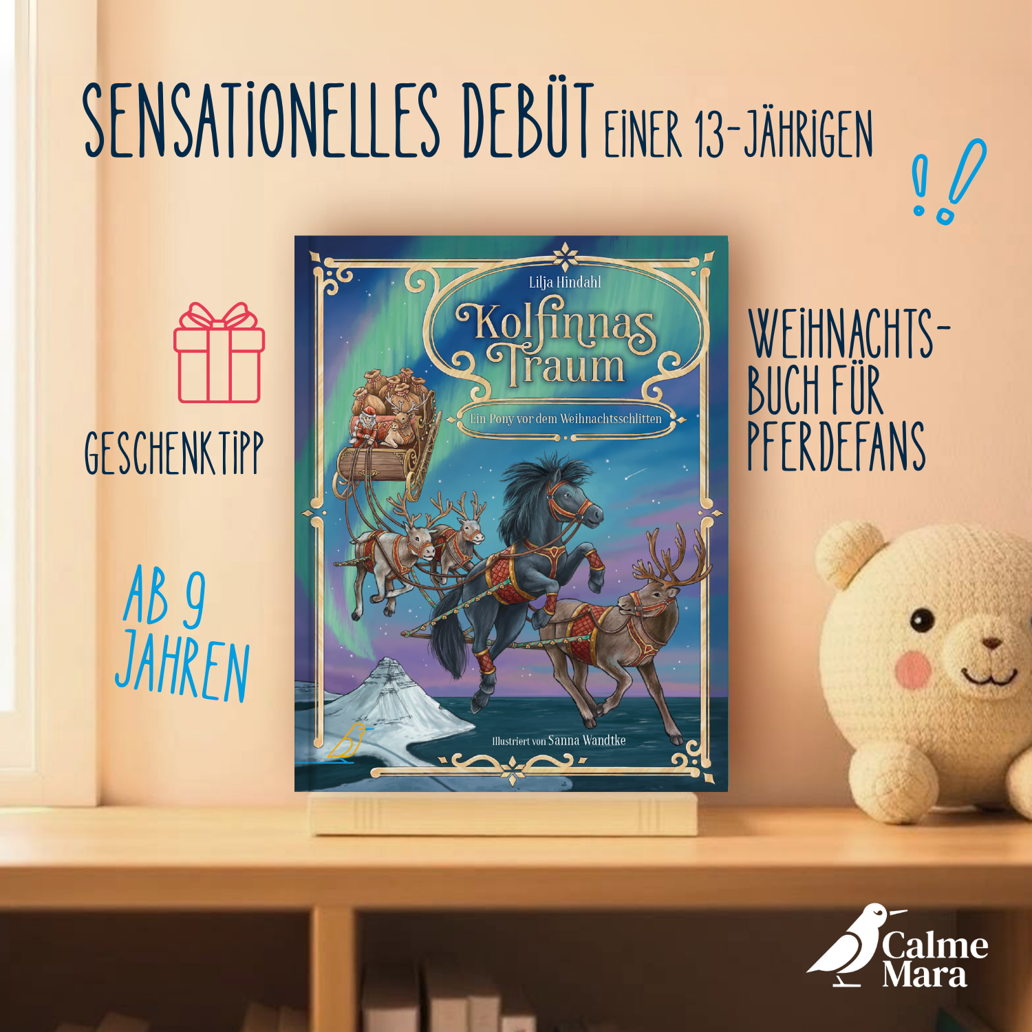 »Kolfinnas Traum – Ein Pony vor dem Weihnachtsschlitten« ist das sensationelle Debüt der damals 11-Jährigen Lilja Hindahl, die aus einem Schulaufsatz im Corona-Lockdown einen spannenden Weihnachtsroman zauberte. »Kolfinnas Traum« ist das perfekte Weihnachtsgeschenk für Pferde-Fans ab 9 Jahren.