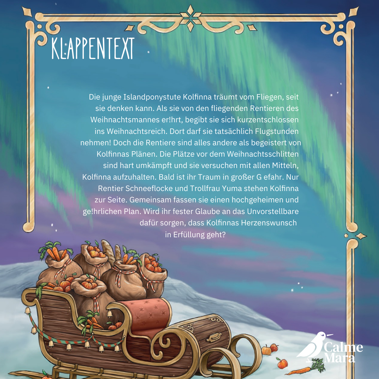 Die junge Islandponystute Kolfinna träumt vom Fliegen, seit sie denken kann. Als sie von den fliegenden Rentieren des Weihnachtsmannes erfährt, begibt sie sich kurzentschlossen ins Weihnachtsreich. Wird ihr fester Glaube an das Unvorstellbare dafür sorgen, dass Kolfinnas Herzenswunsch und ein traumhaftes Weihnachten für sie in Erfüllung gehen?