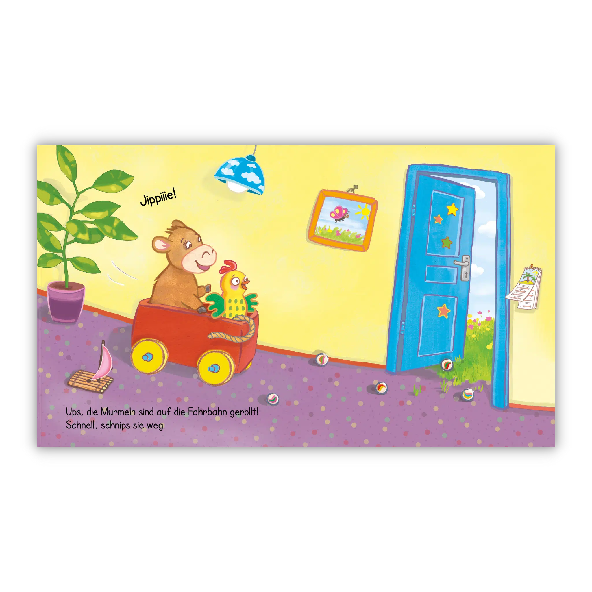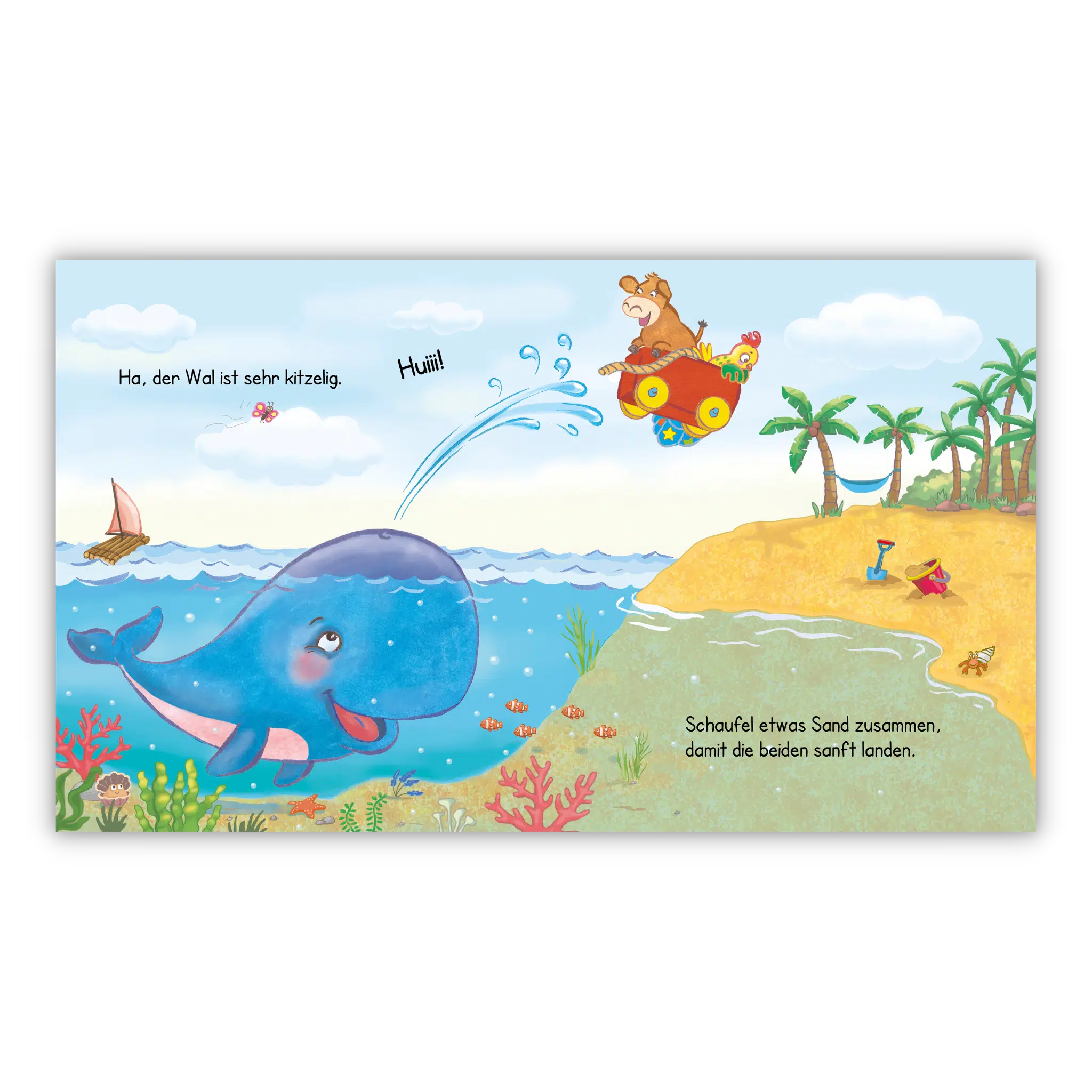 In dem kunterbunten Mitmachbuch ab 2 Jahren verlassen Elsa und Huhn ihre Spielzeugkiste und stürzen sich ins Abenteuer. Doch bei ihrer Reise in der Luft, zu Wasser und an Land brauchen die beiden Kuscheltiere jede Menge Unterstützung: Wer schnipst die Murmeln aus dem Weg? Wer löst den Fallschirm aus? Und wer pustet Wind in die Segel? Kreative Mitmachaktionen und farbenfrohe Illustrationen machen »Elsa und Huhn auf großer Fahrt« zum Lese- und Spiel-Erlebnis.