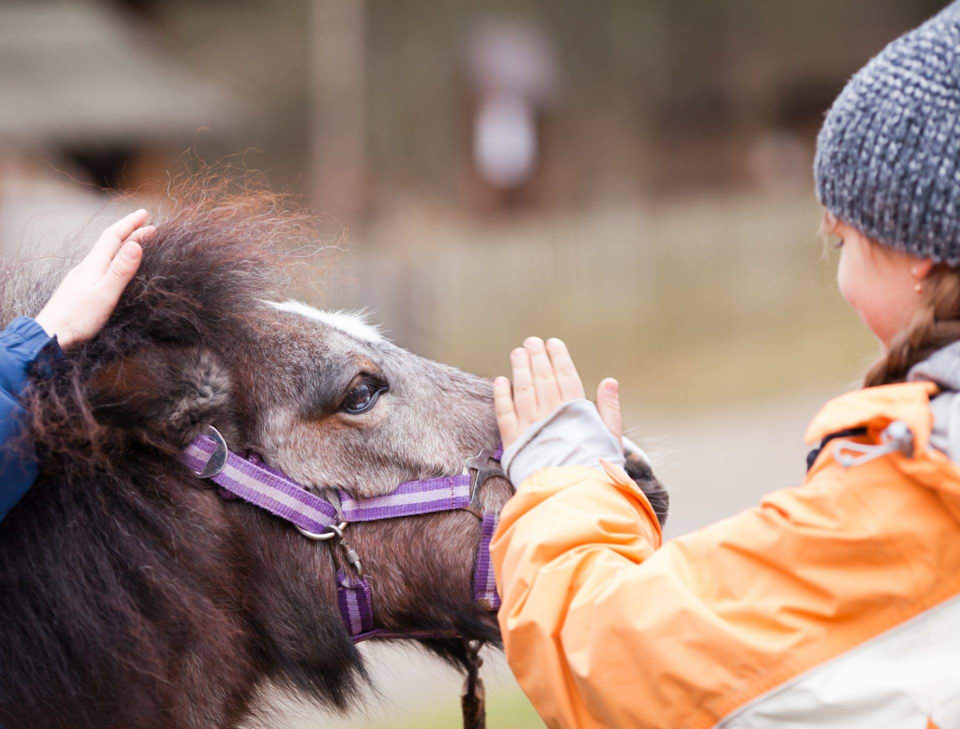 Zwei- und Vierbeiner*innen in tiergestützten pädagogischen und therapeutischen Angeboten zusammen. Hier werden Klein und Groß für den achtsamen Umgang mit Tieren sensibilisiert und finden in herausfordernden Lebenslagen Trost, Unterstützung und Anerkennung. Menschen mit besonderem Förderungsbedarf erweitern im Zusammensein mit den tierischen Dorfbewohner*innen ihre sozialen, kognitiven, motorischen und kommunikativen Fähigkeiten.