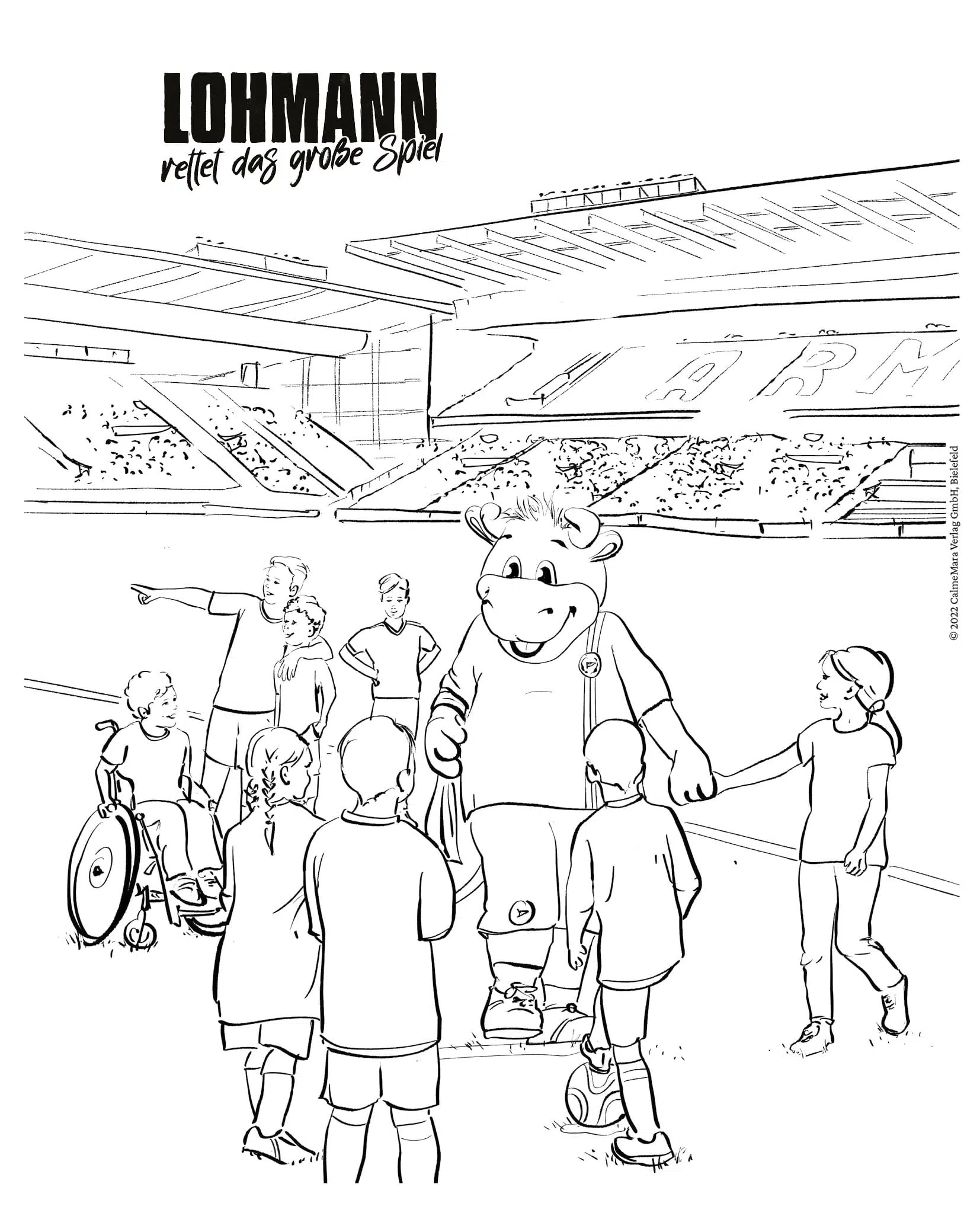 Fussball-Fans aufgepasst: Tauche jetzt mit unserer Ausmalvorlage in Maskottchen Lohmanns rasengrüne und Arminiablaue Welt ein!