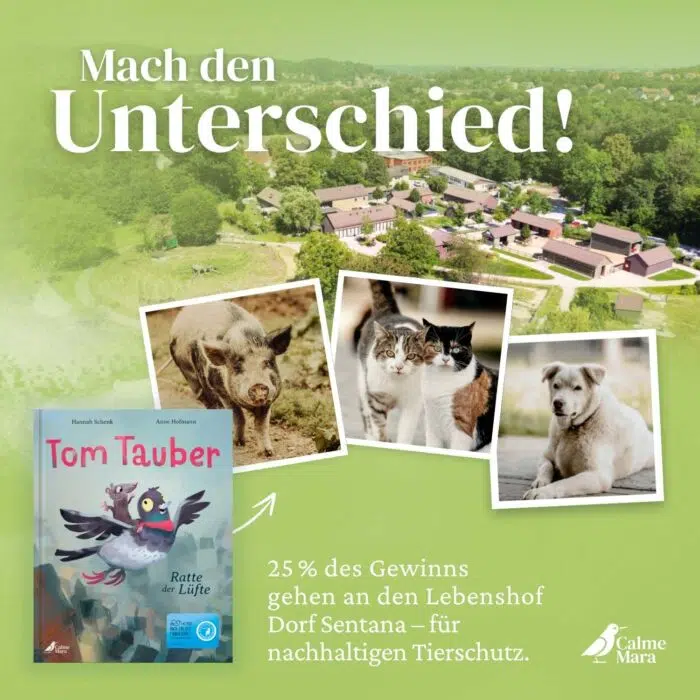Mit dem Kauf dieses Buches unterstützt du das Stadttaubenprojekt #respekttaube des Deutschen Tierschutzbundes sowie die Tiere des Begegnungs- und Lebenshofs Dorf Sentana und die sozialen Projekte vor Ort.